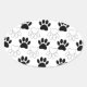 A pattern in black and white of dog paw prints.