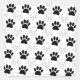 A pattern in black and white of dog paw prints.