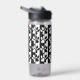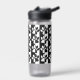 Black and White Dog Paw Prints And Stripes Pattern Water Bottle