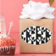A black and white pattern with dog paws and stripes.