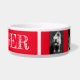 Personalised dog dish. Add your pet's photos. This has a black and white filter on but you can turn it off if you prefer the coloured pictures. Add your dog's name in the personalise area.
