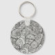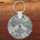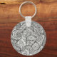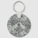 Black and white doodle art keyring. Image both sides. Hand drawn doodle in pen.