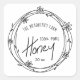 Black and white doodle, 100% pure honey label. Modern sketchy wreath design.