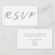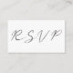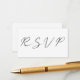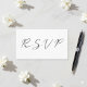 This minimalist RSVP wedding enclosure card showcases elegant grey script against a crisp white background for a timeless, modern look. The front features stylish "RSVP" text, while the back offers ample space to customise with names, contact information, venue, and event details. A sleek and versatile addition to elevate any wedding invitation suite.