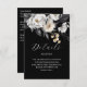 Black and white boho peony flowers dry leaves pampas grass elegant wedding details enclosure card.