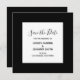 Custom text save the date square invitation flat card with a small square of text in the centre. You can try a different elegant font and text style. Customise the black font face, size and colour. Change the solid black background colour. Customise the size of the white square on the front of the card. Elegant but simple save the date for a wedding. Solid colour wedding save the date. Black and white save the date cards. Handwritten or handwriting style calligraphy script save the dates. Elegant design with a modern touch. You will find all kind of lovely types of paper from economy to fancy craft styles.