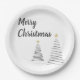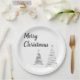 Black and White Elegant Merry Christmas Trees Paper Plate