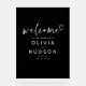 Designed with a bold black background and crisp white text, it keeps things clean and contemporary while adding a sweet, personal touch with the handwritten "Welcome" script — complete with a delicate heart at the end. It’s a small detail, but one that speaks volumes.