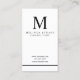 Black and white elegant design featuring monogram and information in black professional font style with black line at the bottom.