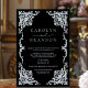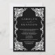 Black and White Elegant Ornate Wedding Invitation. This gorgeous invitation is ornate and sophisticated. Perfect for your formal event! Change background colour to any colour in the design tool.