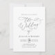 simple wedding invitation with elegant black script. The text, image and colours can be edited.