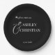 Black and white elegant simple minimalist wedding monogram printed paper plates template bride and groom names wedding plates personalised tableware decor