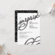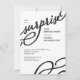 This modern and elegant 4.5" x 6.25" surprise birthday party invitation features the word "surprise" in black script font with a matching swirling design in the bottom right corner. Customise this trendy invite with the name and party info.
