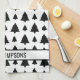 Black And White Fir Christmas Tree Pattern & Text Tea Towel