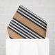 Black and white five stripe pattern with tan tissue paper