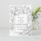A refined monochrome floral design featuring hand-drawn peonies, roses, and a graceful ribbon framing the text. The detailed linework and architectural background give this piece a sophisticated, timeless look — ideal for elegant, classic, or modern black-and-white weddings.