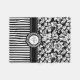 Black And White Floral Damask & Stripes-Monogram Fleece Blanket
