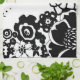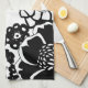 Black and White Floral Garden Graphic Pattern Tea Towel