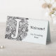 Add a touch of personality (and dry wit) to your desk with this double-sided office tent sign, featuring tattoo-style black and white flowers wrapped around a bold serif monogram "J". The front side reads “Welcome” with the cheeky subtext “Yes, I’m working. Gasp!” while the back flips to “Be Right Back” with the message “Seeking coffee or clarity. Not sure.” Perfect for cubicles, reception desks, classrooms, or home offices with style and a sense of humour.