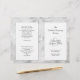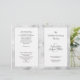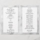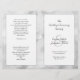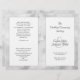 Church wedding program with sample wording for a Catholic marriage ceremony - this is an example only, and not meant to be the true order of the ceremony. Fill in the templates according to your needs. Spaces can be added to fill in between lines as needed. White floral background with white panels for wording in four template areas. When the paper is folded by the purchaser, it will become a folded program with writing on four pages - front and back and side - each sheet of paper is one program. The neutral theme is perfect for a white Christian wedding ceremony.