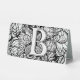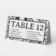 Add a dramatic and functional touch to your wedding or formal event with this double-sided table tent sign featuring a bold floral monogram “B.” The front showcases intricate black and white botanical artwork for a statement display. The back includes a clean, editable layout with “TABLE 12” and space to list up to eight guest names in two columns. Ideal for seating arrangements at weddings, rehearsal dinners, or upscale receptions.