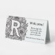Guide your guests with style using this elegant, double-sided wedding table tent sign featuring a bold monogram "R" and detailed black and white floral artwork. The front invites guests to sign the guest book and offer advice for the guest of honour, while the back says “Thank You” with a space to include a custom hashtag and names of the bride and groom. A timeless, editable piece perfect for weddings, showers, or special celebrations.