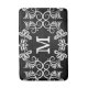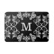 An elegant monogrammed bathmat with white floral pattern on a black background. Personalise with your monogram letter.