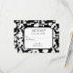 Black and white floral pattern with white pearls and slit corner frame for wedding RSVP.
