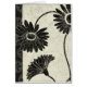 © Daphne Brissonnet / Wild Apple. Three flowers in full bloom, in black and white. The image has a floral patterned background in an off white shade and black on the left side.