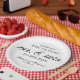 Elegant calligraphy engagement party paper plate. Easy to personalise with your details. Please get in touch with me via chat if you have questions about the artwork or need customisation. PLEASE NOTE: For assistance on orders, shipping, product information, etc., contact Zazzle Customer Care directly https://help.zazzle.com/hc/en-us/articles/221463567-How-Do-I-Contact-Zazzle-Customer-Support-.