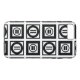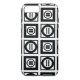 Protect your iPhone 8 Plus/7 Plus from shocks with an impact resistant Case-Mate Tough case featuring a bold geometric pattern of black squares with white space between them. The thick squares each contain a thin black circle with a thick equal sign inside. In contrast, the thin squares each contain a thick black circle that touches the square’s edges with a thin vertical equal sign inside.
