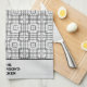 This kitchen towel has a stylish geometric pattern with squares, a modern monochrome statement piece that will add a bit of Scandinavian minimalism. You can of course customise the text to fit your own needs, change the name, font colour or size or even remove the name and oval shape altogether.