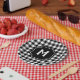 Classic monogram paper plate with gingham check pattern. The versatile buffalo check pattern with black and white checks gives a modern and stylish look to your party paper plates. Perfect for family reunions,baby showers, housewarming party. Please do message for other color options and help in customization.