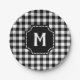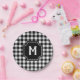 Black And White Gingham Buffalo Check Monogram Paper Plate