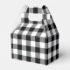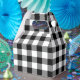 Make your party favours memorable with gable favour boxes featuring black, white, and grey squares in a bold, checked plaid. The black and white gingham pattern is perfect for a black and white theme wedding.