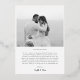 Extend your heartfelt thanks with this exquisitely personalised Thank You wedding card. Featuring elegant black and white photos of the newlyweds and the option for real foil print accents in your choice of gold, silver, or rose gold, this card emanates timeless sophistication. Turn it over to discover a heartfelt message section that you can tailor to your liking. With limitless customisation possibilities, this card offers a unique and meaningful way to convey your gratitude with a personal touch. Choose the foil shade that perfectly complements your style and make a lasting impression with this truly exquisite Thank You card. Your guests will be touched by this extra touch of elegance and appreciation.