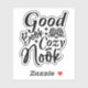 A minimalist black and white sticker that reads: Good Book, Cosy Nook.