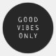 Black and White"Good Vibes Only" Typography Classic Round Sticker