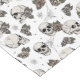 Hand-drawn in black ink, this elegant Halloween tablecloth features a beautiful pattern of skulls, roses and spiderwebs in cream and blush tones, all against an elegant white background.