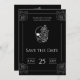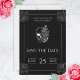 Add a touch of mystery to your wedding with these unique tattoo gothic wedding save the dates! This minimalist black and white save the date invitation features skulls, roses, and other gothic elements, making it perfect for those who want to add a dark twist to their big day. Make a statement with a wedding invitation suite that your guests will never forget. Perfect for a Halloween wedding or hallowedding.