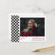 This stylish and sophisticated graduation announcement showcases a photo of the graduating student from either college or high school. The design includes handwritten, contemporary red script overlaid on the photos. The text on the back of the card can be customised to create a basic graduation announcement or a party invitation for the graduate.