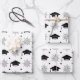 Black and White Graduation Cap Pattern Wrapping Paper Sheet