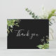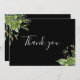 An elegant eucalyptus greenery botanical thank you card, personalised with a special message on the reverse on a black background. Designed by Thisisnotme©