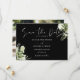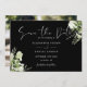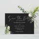 This elegant black and white botanical greenery floral wedding save-the-date card can be personalised with your information in chic typography with your special photo on the reverse. Designed by Thisisnotme©