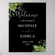 This elegant eucalyptus greenery botanical black and white wedding welcome sign can be personalised with your information in chic typography. Designed by Thisisnotme©