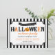 7x5 black and white stripe themed Halloween party invitation. Customisable. Part of a Halloween party collection by Whimzy_Designs.