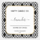 Elegant black and white calligraphy candle labels. Beautiful handwriting with font swooshes. On a modern chic geometric pattern.