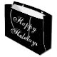 Christmas gift bag with a black and a white snow fleck design. The happy holidays text can be personalised to any message, or text is removable to create an everyday paper gift bag.