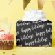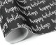 Modern gift wrap set features black with white script "Happy Holidays" text as a diagonal pattern.