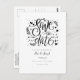 This minimalist save the date card features an elegant script save the date above your details set in elegant typography. The reverse has additional save the date details, including your wedding website, with your return address and space for your recipient's address.